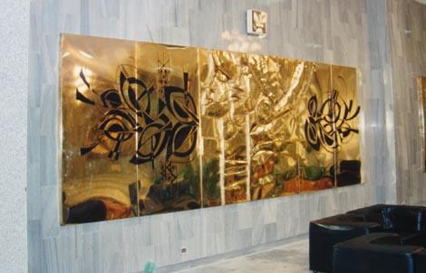 Géométries Obliques et la Croix La gravure est mise en valeur par une attaque chimique noircissante. Le métal est parfois repoussé ou émaillé.