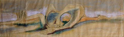 C'est le titre d'une série de Pastels executés sur du papier brun. Le sujet est poignant. Dans la série, Le paysage a forme de corps humain emacié que la terre semble absorber. Lorsque la série est regardée dans l'ordre, on voit un corps humain qui fond et disparait progressivement dans le paysage.